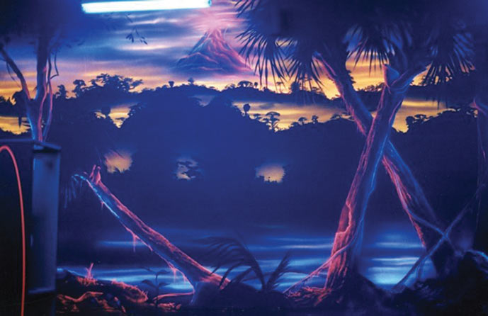 Keith considered his work ethic and reputation for his professional approach to his craft unique in an Industry that depends on creativity in sometimes challenging environments. Large scale Black Light Murals are a direct result of Keith’s earlier experience painting roadside Billboards for his company and commissioned clientele.