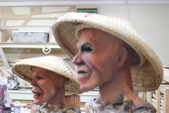 "Oriental Mine Workers" - "Life Size" - Handcarved and Sculpted